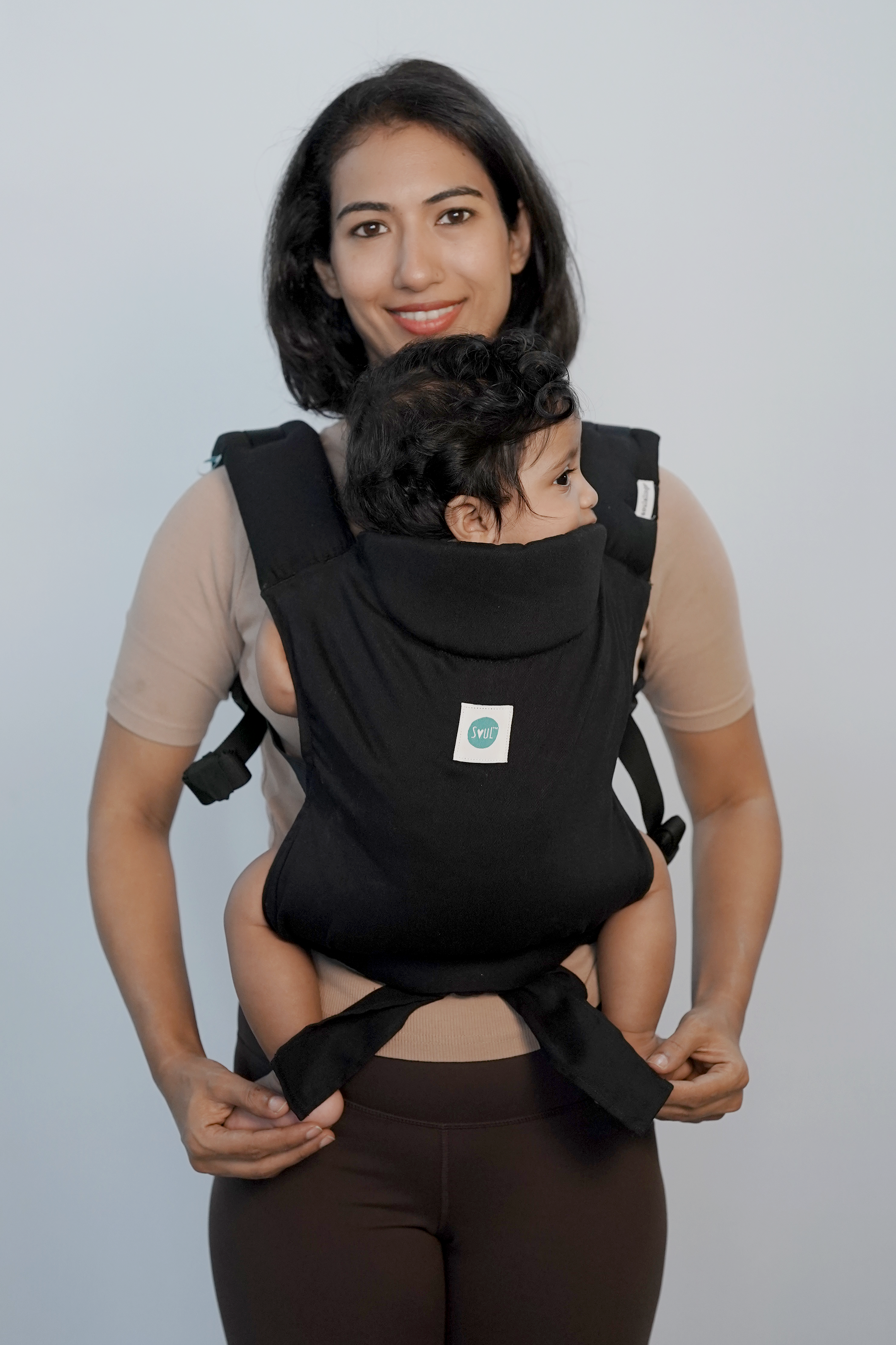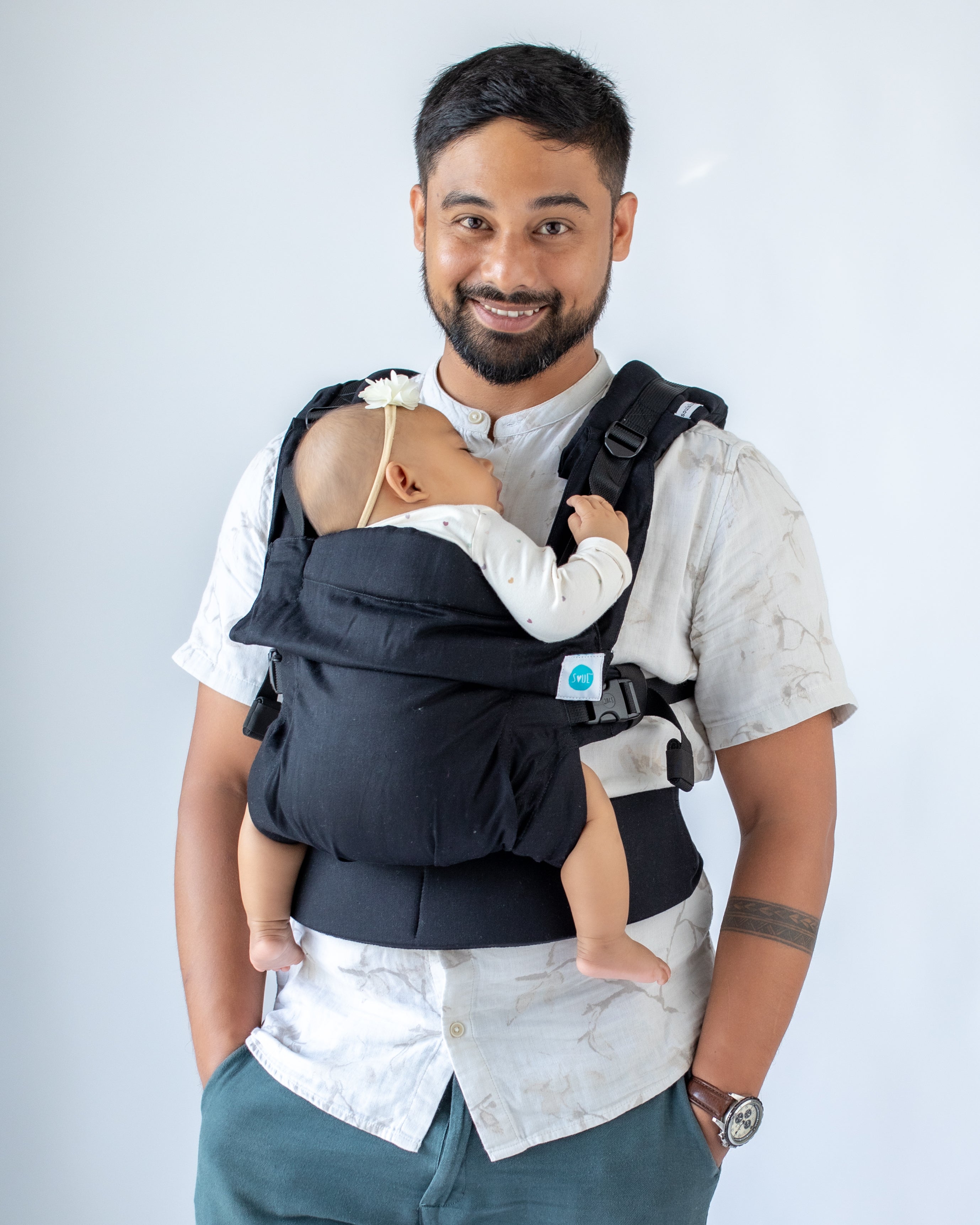 ‘Hybrid’ single buckle carrier which combines the ease of a buckle carrier with flexibility of a ‘meh dai’.